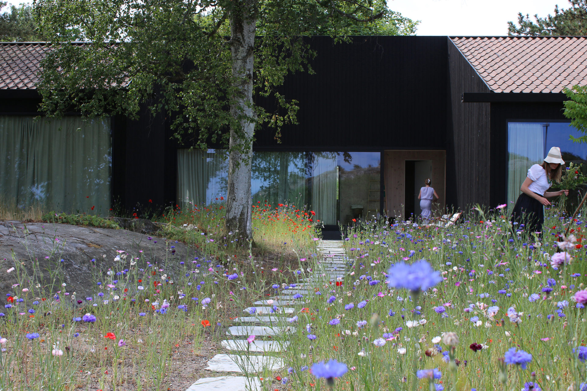 A group of pines that grow with rare force give the place shelter from storms that sweep in regularly. Between the trees, four buildings are placed to seek sun shelter and views with a strategy where outdoor rooms are given equal care as the interior ones. The entrance, living room, kitchen, and terrace form a large transparent space, facing both the sea in the northeast and the evening sun towards the southwest. Serving functions are conversely closed, turned away from the sea. In the quietest position of the house is the master bedroom. The freestanding guesthouse is like a boat, all everyday functions are on a compressed surface independent of the other buildings. At the far end of the plot, in the most secluded location is the sauna. With a foundation on boulders found on site, the building takes a step up into the slightly sloping terrain. Between pines, in the protection of surrounding buildings, it scouts down towards the sea.