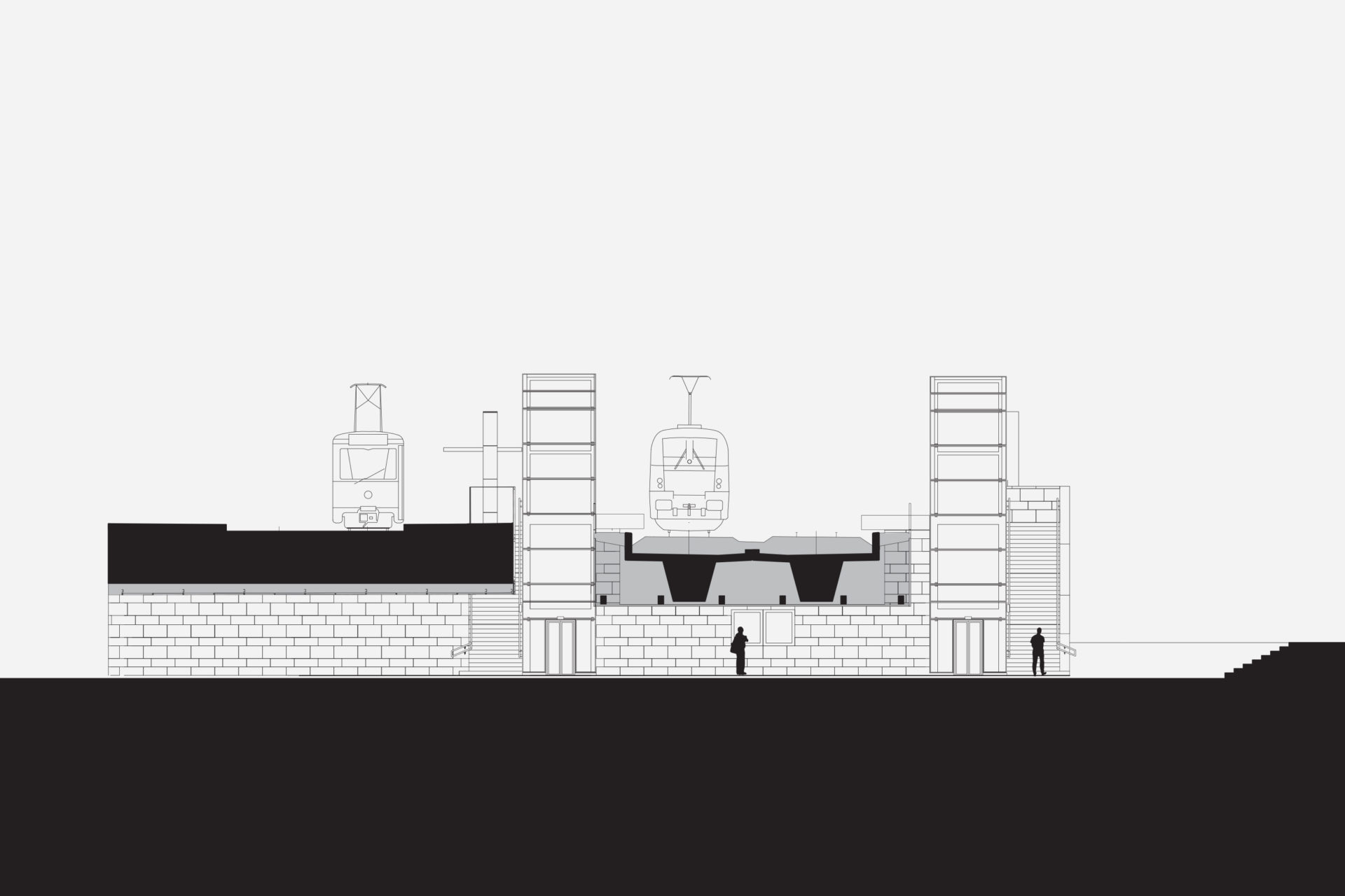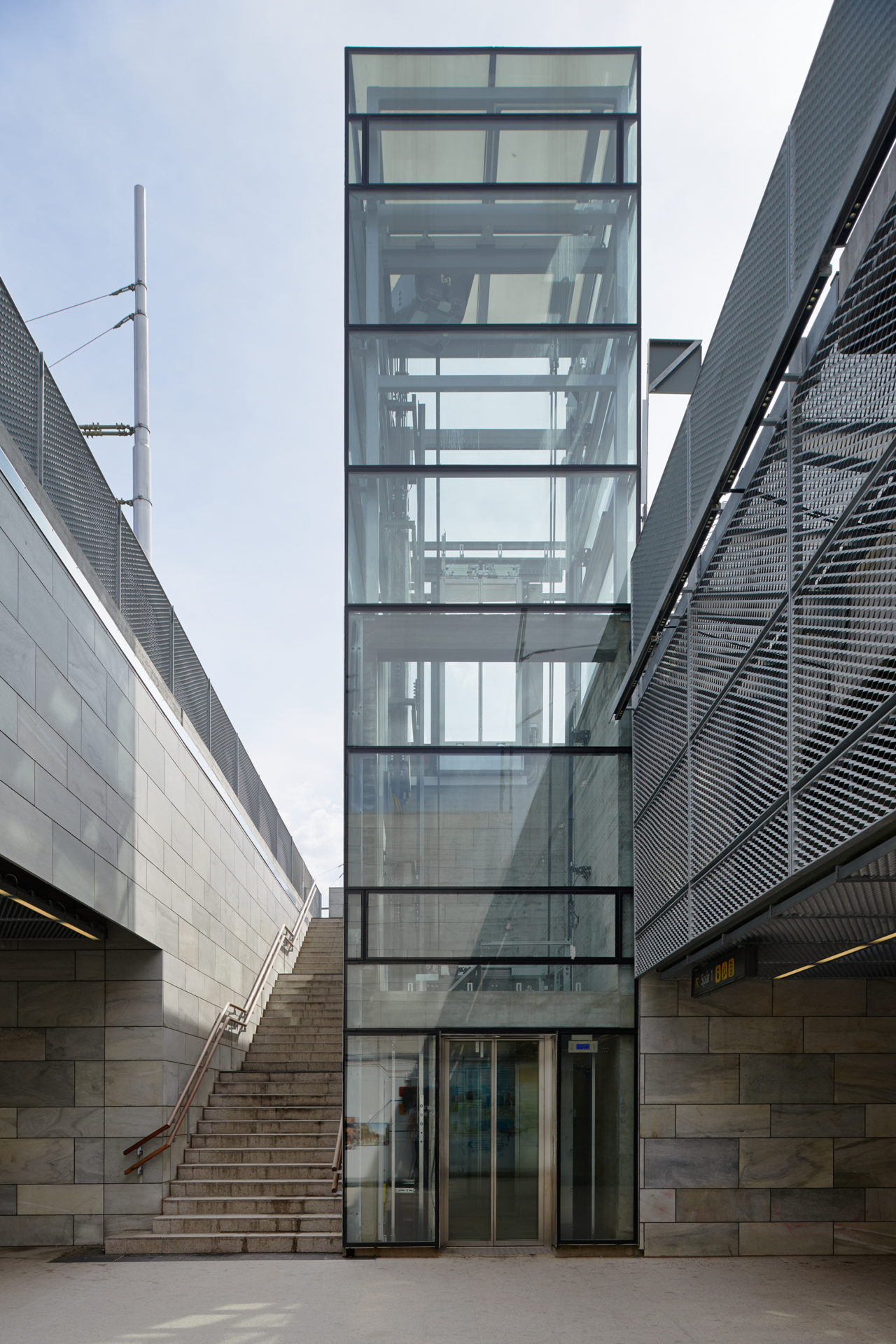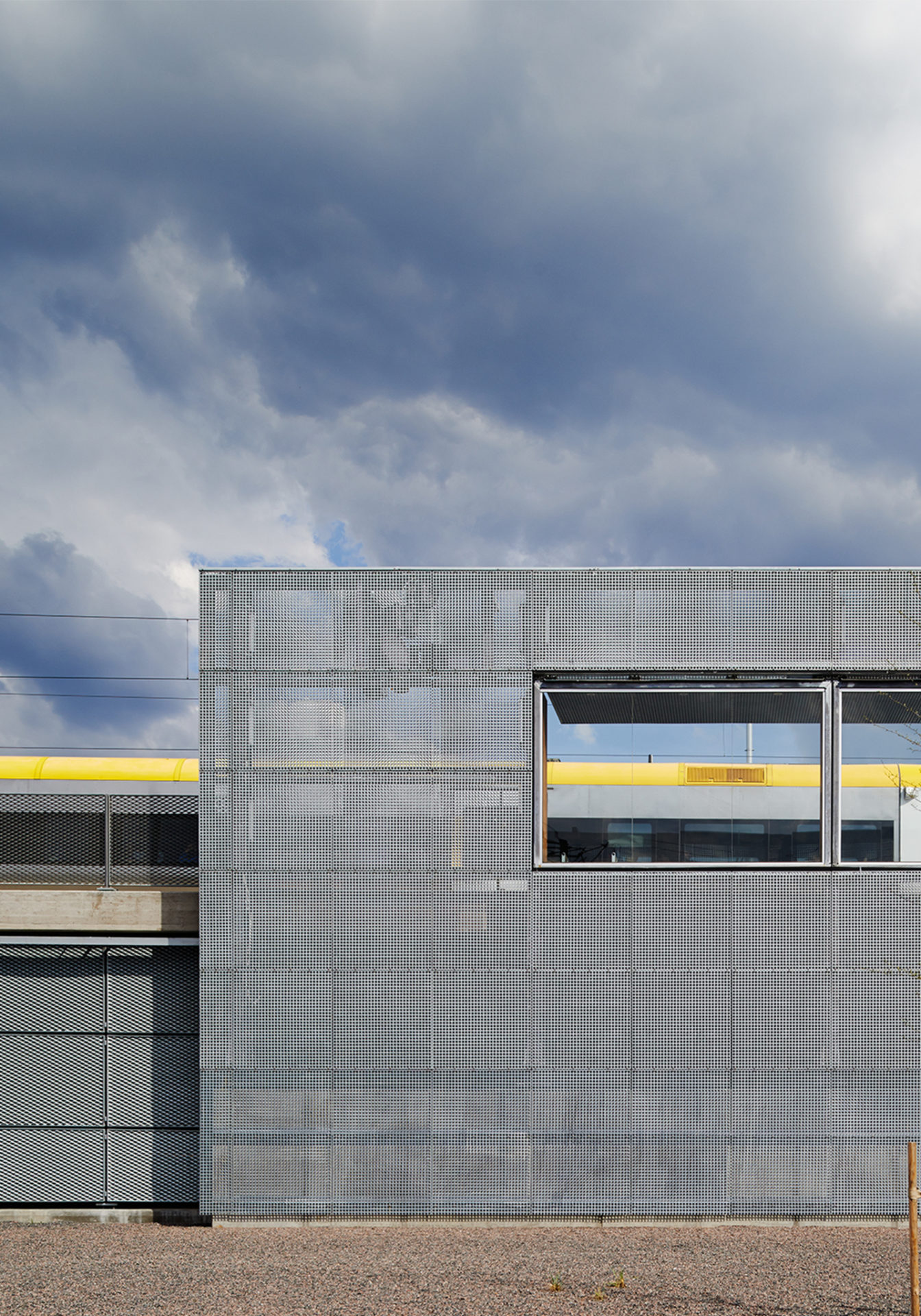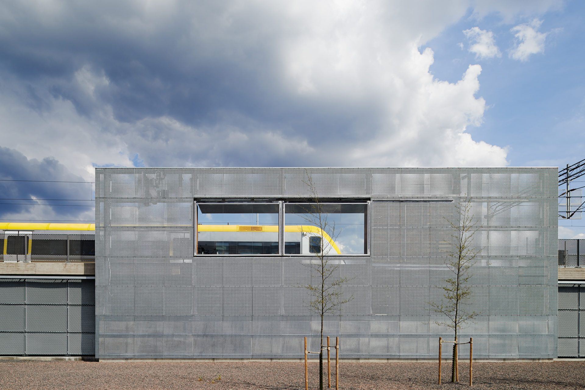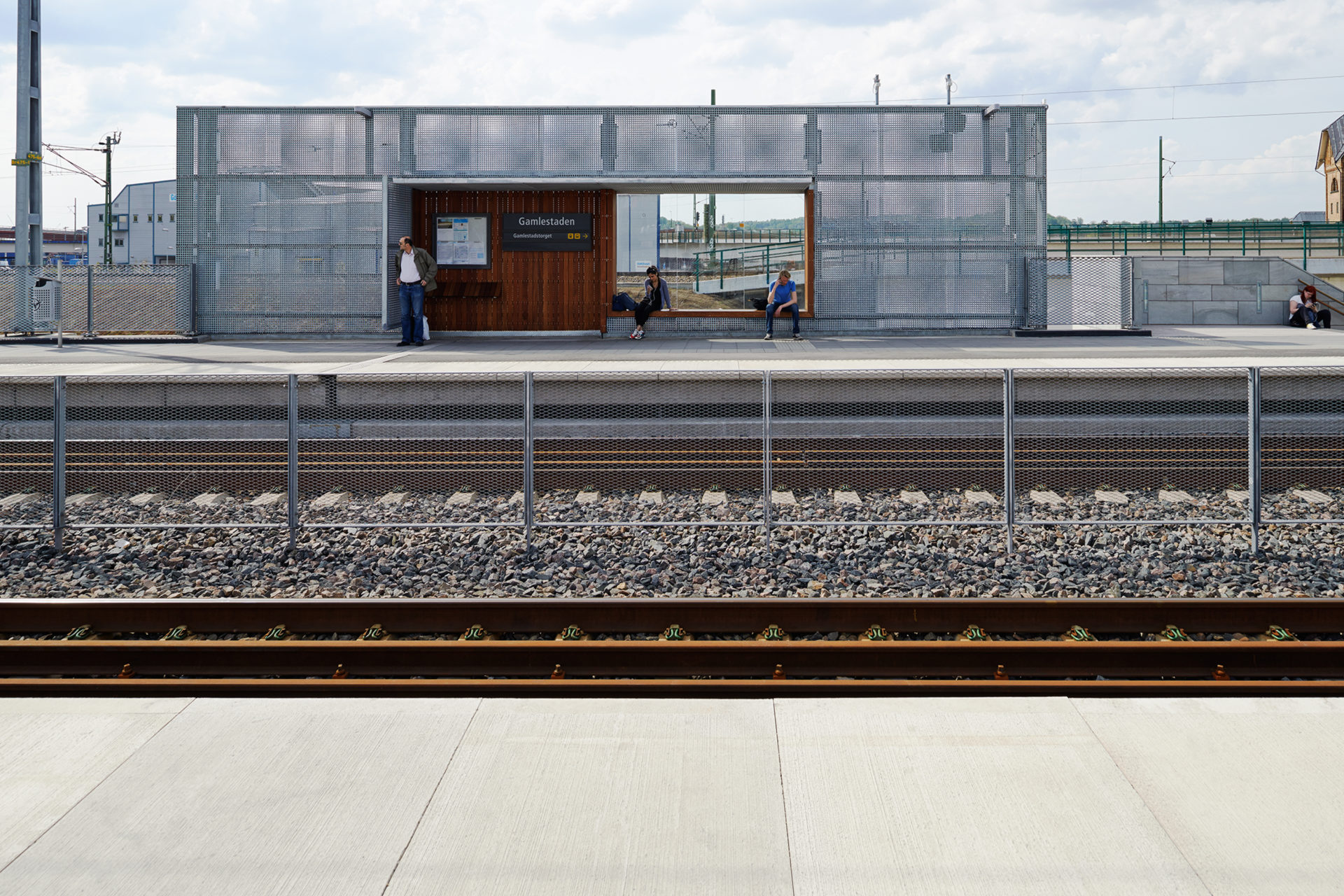 The commuter train station’s marriage with an older tram crossing was the first step in the district’s ongoing transformation. Increasing passenger numbers will continuously support the transformation as travel grows naturally with the surroundings and the train station becomes part of Gothenburg city’s giant train barrel project. In addition to distributing public transport, the station now connects different localities. The platforms are bridges over a river, functioning both as points of entry and exit from trains and as footbridges between a southern older factory area and the district’s new square. Two wide cross-connections under the tracks connect the square with the reborn Slaughterhouse area, and include a high speed cycle track feeding into the city center. A simple structure in terms of materials and construction was necessary considering that in a short time several principals should agree on building the whole as a whole. The railway’s galvanized contact poles are the origin of a unifying material strategy, where galvanized metal was the least common denominator. The various parts of the station consist of metal with elements of glass, stone, and warm wood on selected parts where travelers come close to the otherwise colder durable materials. The perforated metal of the weather protections reduces the wind turbulence around the walls, which in their large format are vertical windbreaks in the open railway landscape. The project was completed in collaboration with Frenning & Sjögren.