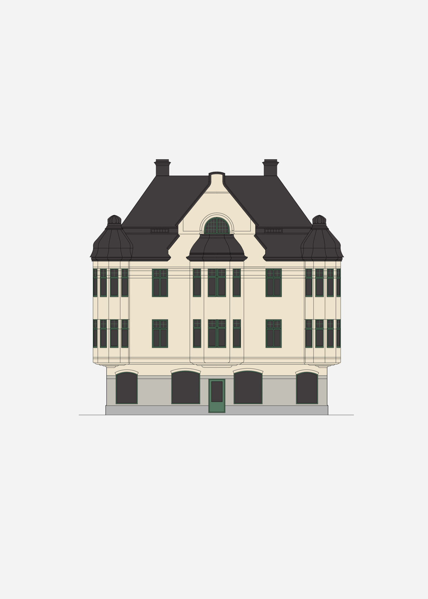 The 1910 Art Nouveau building has had an untouched attic for more than hundred years. Despite some internal and external renovations and changes, the attic has remained basically unused. Around every 60 years, the building seems to face a major renovation and rebuilding project. This time the project means that the entire building is carefully renovated; bathrooms, kitchens, stairwells, retail spaces, roofs and facades. The perfectly southwest facing kitchens also get balconies towards the yard. A number of loft apartments are finally added in the attic which despite facing the street, do not affect the facades towards it. Five frontispieces that give the facades even rhythms come into use. The original appearance is maintained regardless of the big change behind the protected facades.